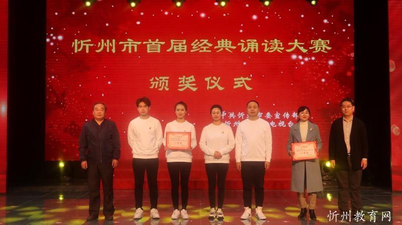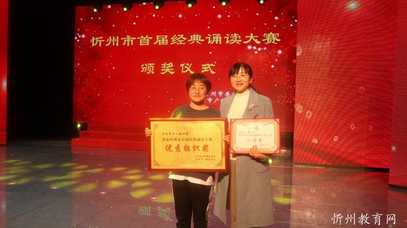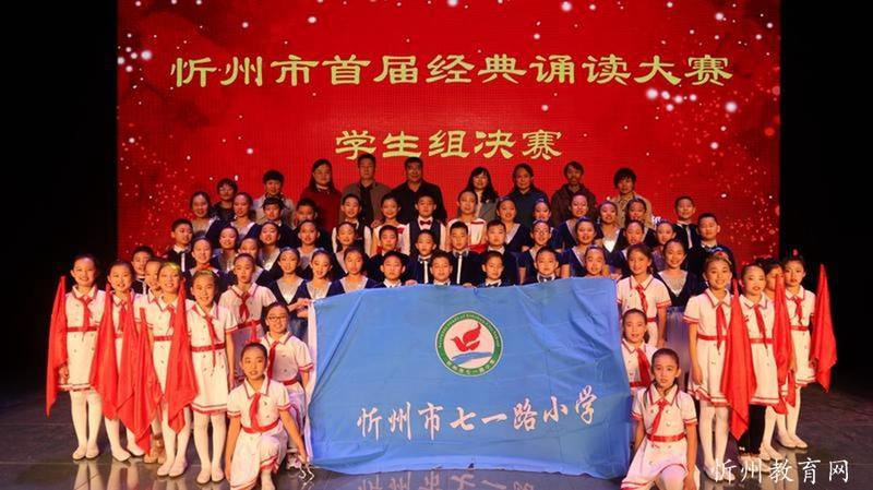 “共讀中華經(jīng)典,聆聽古詩書韻”。由中共忻州市委宣傳部主辦,忻州市廣播電視臺承辦 “忻州市首屆經(jīng)典誦讀大賽”經(jīng)過初賽海選和緊張激烈的復(fù)賽和決賽,于11月1日落下帷幕。本次比賽學(xué)生組共有四十一個參賽節(jié)目,經(jīng)過角逐,有十個節(jié)目進入了決賽。決賽采取評委當場亮分,現(xiàn)場點評的方式,最終評出一等獎一名,二等獎二名,三等獎三名,最佳風(fēng)采獎四名。七一路小學(xué)以98.51分的成績奪冠,榮獲學(xué)生組一等獎。同時學(xué)校也榮獲優(yōu)秀組織獎。