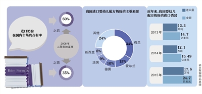 今年2月,中國海關(guān)發(fā)布的數(shù)據(jù)顯示,2015年我國進(jìn)口嬰幼兒配方奶粉達(dá)到17.6萬噸,較2014年的12.1萬噸增加5.5萬噸,同比增長45%;進(jìn)口嬰幼兒配方奶粉的價(jià)值達(dá)到24.7億美元,同比增長59.5%。