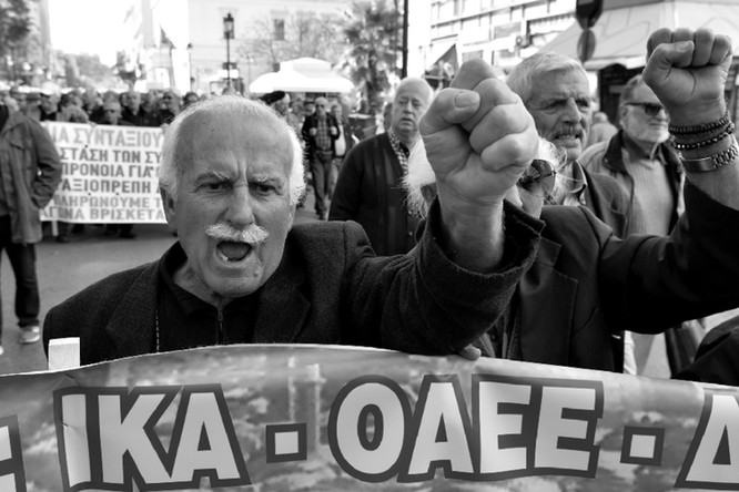 3月10日,雅典街頭,希臘人集會(huì)抗議養(yǎng)老金改革。