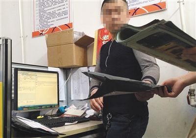 4月21日,圓通快遞太原長(zhǎng)風(fēng)分公司。一名負(fù)責(zé)人教記者如何做空包裹,同時(shí)遞給記者一疊廣告紙,建議做空包時(shí)放入。 新京報(bào)記者 大路 攝