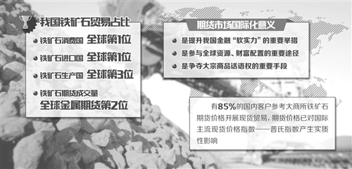 以鐵礦石為例,我國是全球最大的鐵礦石消費國和進口國、第三大生產(chǎn)國,全球70%的貿(mào)易量流入中國,我國鐵礦石期貨成交量也已位居全球金屬期貨第二名。但是,由于鐵礦石期貨市場參與者主要局限于國內(nèi),所形成的價格對國際市場的輻射力和影響力還不夠。