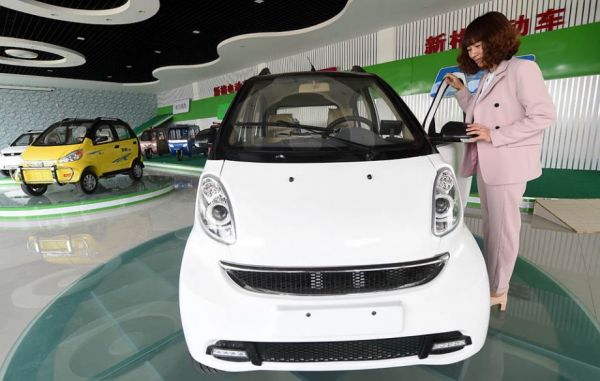 資料圖:4月5日,顧客在河北省大城縣三迪電動(dòng)車有限公司展廳選購電動(dòng)汽車。河北省大城縣是華北地區(qū)最大的電動(dòng)車生產(chǎn)基地之一。新華社記者 李曉果 攝