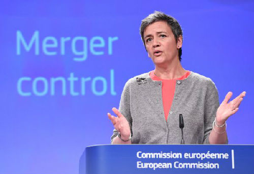 4月5日,歐洲反壟斷監(jiān)管負(fù)責(zé)人瑪格麗特·維斯特格宣布中國(guó)化工收購(gòu)先正達(dá)通過(guò)反壟斷審批。(法新社)