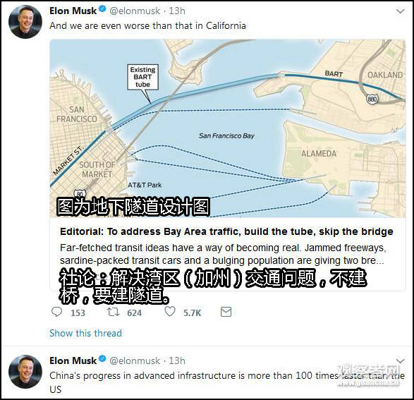 感嘆完中國速度,馬斯克又聯想到美國加利福尼亞州和紐約市擁堵的交通情況,并“憤怒三連發(fā)”,稱“我們在加州和紐約都做得更差”。