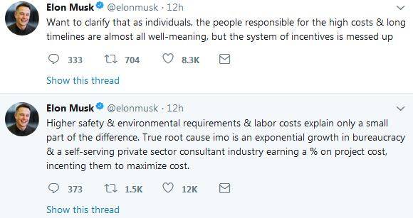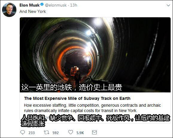 馬斯克還對美國的基建行業(yè)現狀做出了自己的看法。他表示,安全、環(huán)保、人力只是一小部分因素,官僚體系和以利益最大化為目標的私企們,才是造成美國基建落后的“罪魁禍首”。
