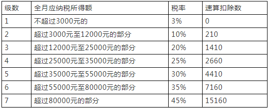 注意稅率表里有一欄“速算扣除數(shù)”。速算扣除數(shù)是指為解決超額累進稅率分級計算稅額的復雜技術問題,而預先計算出的一個數(shù)據(jù)。