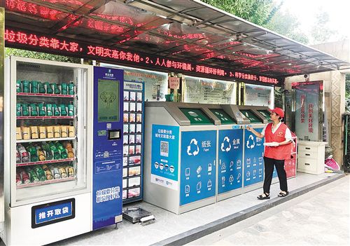智能化垃圾箱在杭州市余杭區(qū)金帝海珀華庭小區(qū)的應(yīng)用取得了良好效果。王軼辰攝