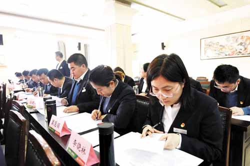 輪訓(xùn)期間,全體與會(huì)人員集中觀看《中國共產(chǎn)黨為什么能》《談?wù)勚袊J健方逃]営?xùn)結(jié)束后統(tǒng)一組織了結(jié)業(yè)考試。(楊 煦)