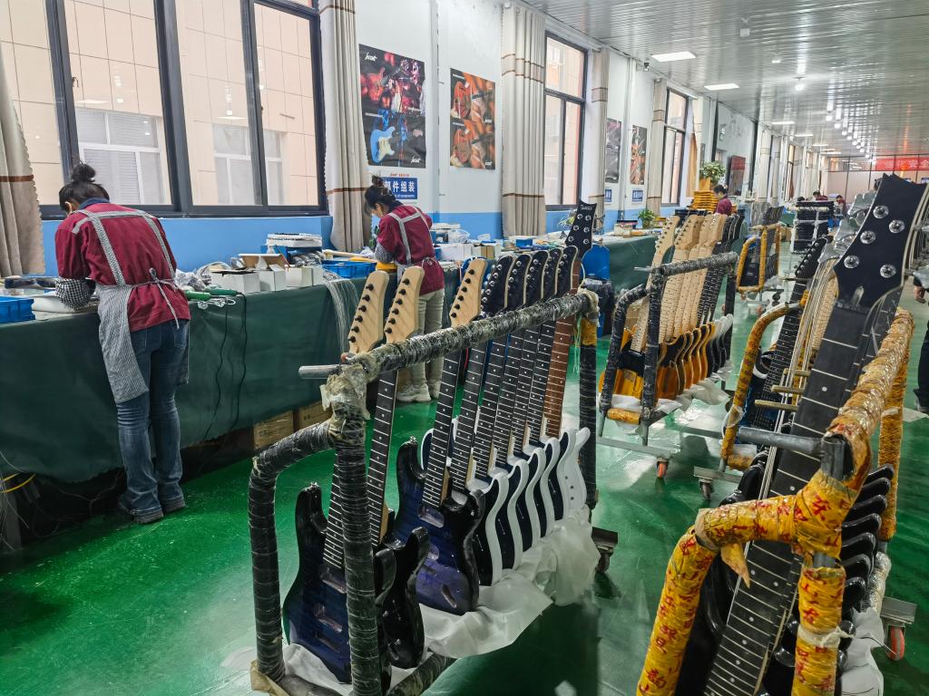從小作坊到大品牌,從莊稼漢到調(diào)音師,從小打小鬧到全球話語(yǔ)權(quán),鄌郚鎮(zhèn)的電吉他撫慰全球人的耳朵,豐富全球人的快樂(lè),也充盈著小鎮(zhèn)人民的錢(qián)包和日子。