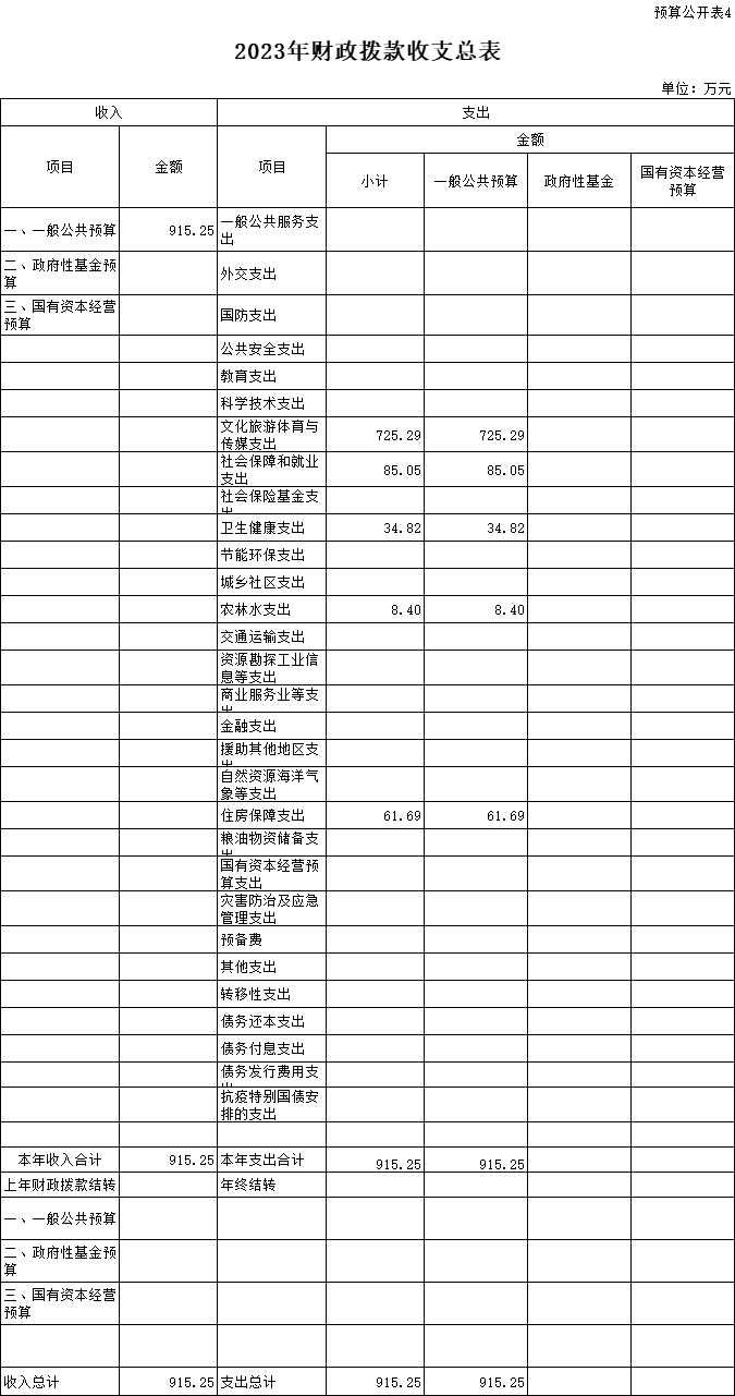 四、2023年財政撥款收支總表