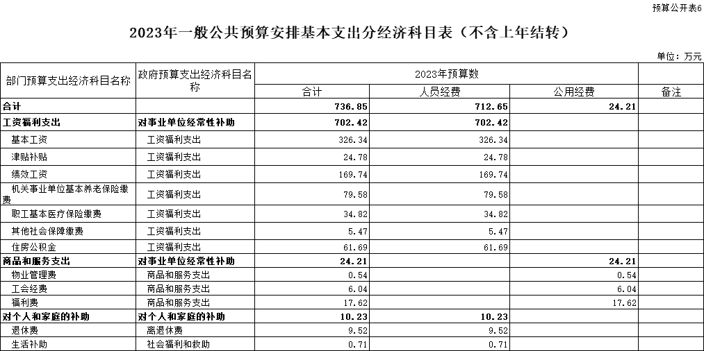 基本支出736.85萬元,比2022年增加10.69萬元,基本支出系按現(xiàn)有人員工資標準和公共經(jīng)費定額標準核定,主要用于保障機關正常運轉、完成日常工作任務而發(fā)生的各項支出。其中:工資福利支出702.42萬元,對個人和家庭的補助支出10.23萬元,公用經(jīng)費項目24.21萬元。