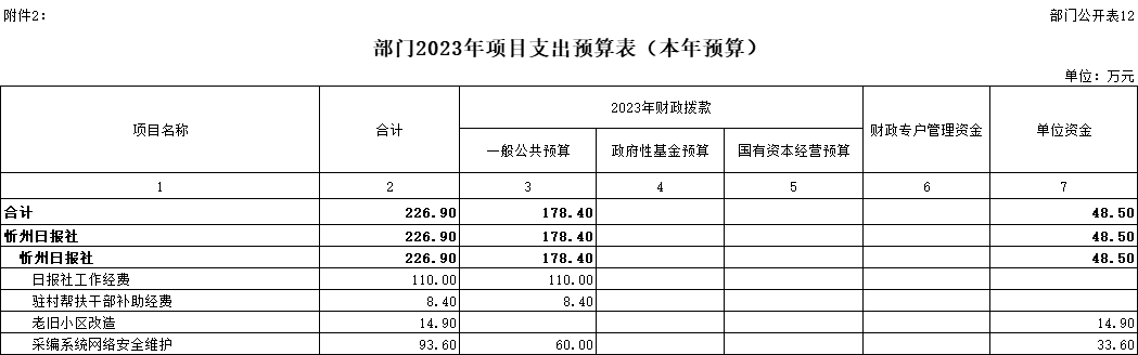第三部分2023年度忻州日報社預算情況說明