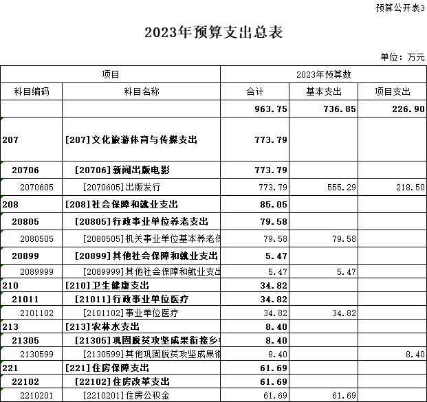 三、2023年預算支出總表