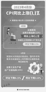 據(jù)新華社電 國家統(tǒng)計局11日發(fā)布數(shù)據(jù),4月份,全國居民消費價格指數(shù)(CPI)同比上漲0.1%,漲幅比上月回落0.6個百分點。
