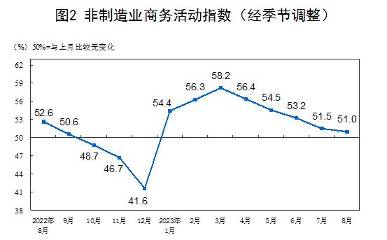 此外,在中國非制造業(yè)采購經(jīng)理指數(shù)運行情況方面,8月份,非制造業(yè)商務活動指數(shù)為51.0%,比上月下降0.5個百分點,仍高于臨界點,非制造業(yè)持續(xù)擴張。
