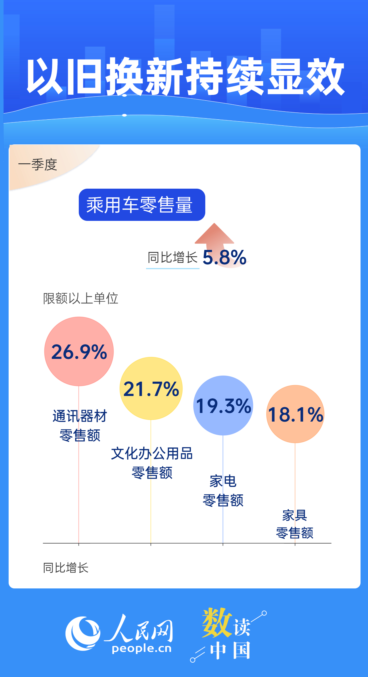 消費(fèi)不僅關(guān)系民生福祉,也關(guān)系經(jīng)濟(jì)發(fā)展。商務(wù)部近日發(fā)布的數(shù)據(jù)顯示,今年一季度,消費(fèi)市場(chǎng)總體實(shí)現(xiàn)平穩(wěn)開(kāi)局;我國(guó)批發(fā)和零售業(yè)取得良好開(kāi)局,為擴(kuò)大國(guó)內(nèi)需求、暢通國(guó)民經(jīng)濟(jì)循環(huán)提供有力支撐。