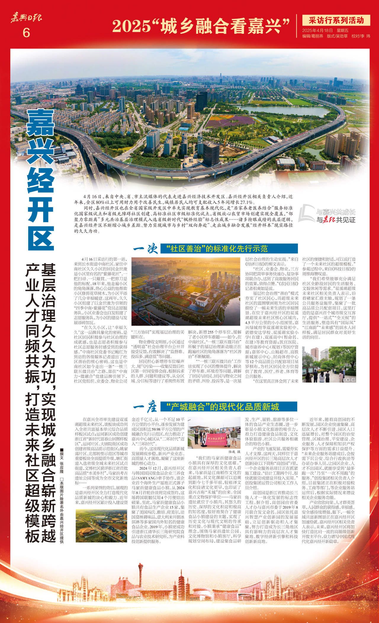 同時(shí),嘉興經(jīng)開區(qū)也在全省國(guó)家級(jí)開發(fā)區(qū)中率先實(shí)現(xiàn)教育基本現(xiàn)代化,是“居家養(yǎng)老醫(yī)養(yǎng)結(jié)合”服務(wù)標(biāo)準(zhǔn)化國(guó)家級(jí)試點(diǎn)和省級(jí)無障礙社區(qū)創(chuàng)建、高標(biāo)準(zhǔn)社區(qū)市級(jí)標(biāo)準(zhǔn)化試點(diǎn),省級(jí)放心農(nóng)貿(mào)市場(chǎng)創(chuàng)建實(shí)現(xiàn)全覆蓋,“鄰聚力零距離”多元共治基層治理模式入選省級(jí)新時(shí)代“楓橋經(jīng)驗(yàn)”標(biāo)志性成果……諸多搶眼成績(jī)的底層邏輯,是嘉興經(jīng)開區(qū)不斷縮小城鄉(xiāng)差距、努力實(shí)現(xiàn)城市與鄉(xiāng)村“雙向奔赴”、走出城鄉(xiāng)融合發(fā)展“經(jīng)開樣本”現(xiàn)實(shí)路徑的久久為功。