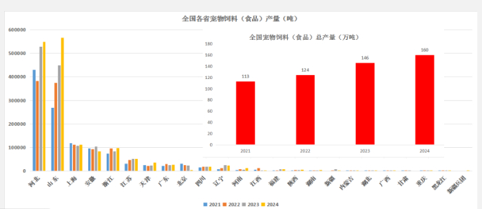 四川省成都市黃女士手機(jī)App遠(yuǎn)程操控智能喂食器截圖 在四川成都,黃女士借助手機(jī)App遠(yuǎn)程操控智能喂食器,為寵物貓精準(zhǔn)投喂定制鮮糧,成為科技養(yǎng)寵的范例。 王宗禮指出,在科技與產(chǎn)業(yè)升級(jí)的雙重推動(dòng)下,智能用品(如喂食器、貓砂盆)、寵物保險(xiǎn)、健康管理App等創(chuàng)新產(chǎn)品如雨后春筍般涌現(xiàn),推動(dòng)著寵物產(chǎn)品逐漸向高附加值方向升級(jí)。 “科技為寵物行業(yè)發(fā)展插上了騰飛的翅膀?!闭缰袊?guó)農(nóng)業(yè)科學(xué)院飼料研究所寵物營(yíng)養(yǎng)與食品創(chuàng)新團(tuán)隊(duì)首席科學(xué)家王金全所言,如今,寵物用品形態(tài)不斷升級(jí),消費(fèi)者需求也從“基礎(chǔ)喂養(yǎng)”向“情感陪伴”和“精準(zhǔn)營(yíng)養(yǎng)”轉(zhuǎn)變。 農(nóng)業(yè)農(nóng)村部食物與營(yíng)養(yǎng)發(fā)展研究所王鳳忠表示,科技正為寵物產(chǎn)業(yè)注入強(qiáng)勁動(dòng)能。我國(guó)寵物企業(yè)與機(jī)構(gòu)當(dāng)以精準(zhǔn)醫(yī)療、功能性食品研發(fā)等為突破口,推動(dòng)產(chǎn)業(yè)多維發(fā)展。 產(chǎn)業(yè)發(fā)展集群化 寵物產(chǎn)業(yè)園發(fā)展在我國(guó)寵物產(chǎn)業(yè)集聚與升級(jí)進(jìn)程中扮演著關(guān)鍵角色,為寵物經(jīng)濟(jì)持續(xù)增長(zhǎng)注入強(qiáng)勁動(dòng)力。近年來(lái),一些地方政府積極投身寵物產(chǎn)業(yè)區(qū)域產(chǎn)業(yè)園的規(guī)劃與建設(shè) 中國(guó)農(nóng)業(yè)科學(xué)院飼料研究所寵物營(yíng)養(yǎng)團(tuán)隊(duì)針對(duì)2021年至2024年全國(guó)各寵物飼料(食品)產(chǎn)量的分析(中國(guó)農(nóng)業(yè)科學(xué)院飼料研究所寵物營(yíng)養(yǎng)團(tuán)隊(duì)供圖) 據(jù)中國(guó)飼料工業(yè)協(xié)會(huì)最新統(tǒng)計(jì),2024年山東省寵物食品產(chǎn)量達(dá)56.6萬(wàn)噸,超越河北,東北地區(qū)亦呈新興發(fā)展態(tài)勢(shì)。王宗禮稱,寵物產(chǎn)業(yè)集群效應(yīng)顯著,依托原料、區(qū)位等優(yōu)勢(shì)實(shí)現(xiàn)集群化發(fā)展。山東、河北產(chǎn)量占全國(guó)近70%,長(zhǎng)三角占21%。 目前,全國(guó)已建成河北南和寵物小鎮(zhèn)、山東煙臺(tái)寵物產(chǎn)業(yè)園等22個(gè)重點(diǎn)寵物產(chǎn)業(yè)園區(qū)。在寵物產(chǎn)業(yè)園全國(guó)分布上,山東臨沂、河北邢臺(tái)以及長(zhǎng)三角地區(qū)已成為核心發(fā)展區(qū)域。新興地區(qū)如北京平谷區(qū)、深圳羅湖區(qū)等也在加快布局步伐。 記者了解到,深圳羅湖正在規(guī)劃建設(shè)占地面積達(dá)7.5萬(wàn)平方米的寵物經(jīng)濟(jì)產(chǎn)業(yè)園,已成功吸引182家寵物企業(yè)入駐。為推動(dòng)產(chǎn)業(yè)快速發(fā)展,當(dāng)?shù)卣€出臺(tái)了專項(xiàng)扶持政策。 “當(dāng)?shù)卣e極出臺(tái)政策,力促園區(qū)寵物產(chǎn)業(yè)創(chuàng)新與綠色發(fā)展?!苯K金灌投資發(fā)展集團(tuán)有限公司副總經(jīng)理趙京輝向記者介紹,江蘇灌南縣借力地理與資源優(yōu)勢(shì),傾力打造寵物食品全產(chǎn)業(yè)鏈園區(qū)。目前,該園區(qū)已吸引多家寵物企業(yè),形成產(chǎn)業(yè)集群效應(yīng)。 遼寧鞍山是我國(guó)重要寵物繁育基地,鞍山市農(nóng)業(yè)農(nóng)村局副局長(zhǎng)韓偉表示,鞍山市每年向全國(guó)輸送犬貓達(dá)150萬(wàn)只。此外,寵物交易規(guī)范化穩(wěn)步推進(jìn),由鞍山市寵物商會(huì)參與制定的相關(guān)團(tuán)體標(biāo)準(zhǔn)初稿已完成,正加緊審核,預(yù)計(jì)今年晚些時(shí)候發(fā)布。 王鳳忠認(rèn)為,目前,各地寵物產(chǎn)業(yè)園已形成涵蓋研發(fā)、生產(chǎn)、檢測(cè)、銷售等環(huán)節(jié)的全產(chǎn)業(yè)鏈。從單一生產(chǎn)向“研發(fā)—制造—市場(chǎng)”全方位整合的模式,提升了產(chǎn)業(yè)效率。 自主品牌國(guó)際化 在全球化浪潮的推動(dòng)下,中國(guó)寵物產(chǎn)業(yè)“出海”步伐不斷加快,品牌日益國(guó)際化。 王金全表示,過(guò)去十年間,我國(guó)犬貓食品進(jìn)出口貿(mào)易呈現(xiàn)出穩(wěn)健增長(zhǎng)的良好態(tài)勢(shì),且出口占據(jù)主導(dǎo)地位。這得益于國(guó)際寵物食品市場(chǎng)的持續(xù)拓展以及我國(guó)寵物食品產(chǎn)能與質(zhì)量的穩(wěn)步提升。