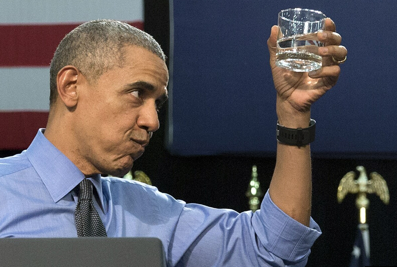 當(dāng)天,奧巴馬主動(dòng)喝下當(dāng)?shù)亟?jīng)過(guò)過(guò)濾的飲用水,以此表明對(duì)這座城市水質(zhì)的信心。