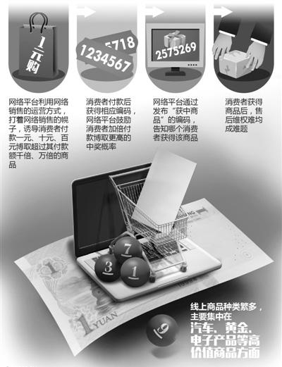 網(wǎng)站將商品價(jià)格平分成若干等份,一元一份,消費(fèi)者購(gòu)買一份或多份后,等待“幸運(yùn)號(hào)碼”揭曉