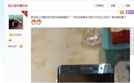 中國(guó)網(wǎng)友“吉娃娃你”的在百度貼吧中上傳的爆炸后的Note7圖片。