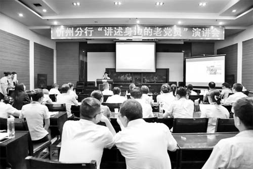 炎炎夏日,熱情似火。在建行忻州市分行12樓會議室內,一場以“慶祝建黨96周年,講述身邊的老黨員”為主題的演講會正在隆重上演。