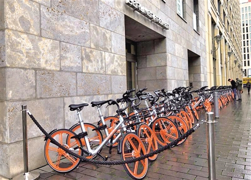 圖為擺放在德國(guó)柏林街頭,準(zhǔn)備投放的摩拜單車。謝 飛攝