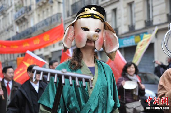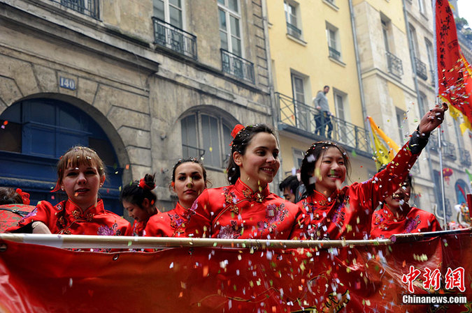 一群法國(guó)姑娘穿著唐裝,興高采烈的參加春節(jié)游行,喜感滿(mǎn)滿(mǎn)。