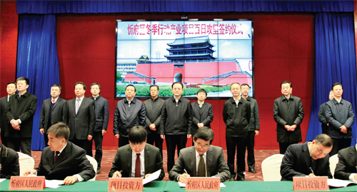 忻府區(qū)領(lǐng)導(dǎo)在簽約儀式上承諾,將繼續(xù)在市委、市政府的堅(jiān)強(qiáng)領(lǐng)導(dǎo)下,全面推進(jìn)項(xiàng)目攻堅(jiān)百日行動(dòng),堅(jiān)持叩門招商、開放包容、鞠親服務(wù),堅(jiān)決杜絕吃、拿、卡、要,嚴(yán)厲打擊破壞投資環(huán)境的人和事,全力營(yíng)造親商、安商、富商的良好氛圍。集中人力、精力、財(cái)力,服務(wù)、指導(dǎo)、幫扶到位,落實(shí)任務(wù)、責(zé)任、措施,促開工、搶進(jìn)度,攻難點(diǎn)、破難題,強(qiáng)服務(wù)、治環(huán)境,發(fā)揚(yáng)“白+黑”、“5+2’’、“晴+雨”連續(xù)作戰(zhàn)精神,苦干實(shí)干,按照“九個(gè)一批”工作方案,全力解決已排查出的涉及現(xiàn)有32個(gè)項(xiàng)目中的51個(gè)問題,全力策劃好總投資222.16億元的華能風(fēng)光互補(bǔ)發(fā)電、上海航天光伏發(fā)電、北京富丞應(yīng)急救援工程等30個(gè)項(xiàng)目,全力促進(jìn)總投資41.25億元的田森匯生活購(gòu)物廣場(chǎng)等6個(gè)項(xiàng)目落地,全力推進(jìn)總投資85.8億元的華能風(fēng)電、上海光伏發(fā)電等23個(gè)項(xiàng)目的開工建設(shè)。