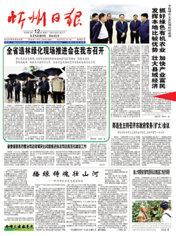 2015年9月9日至10日,全省造林綠化現(xiàn)場(chǎng)推進(jìn)會(huì)在忻州市召開(kāi),省委副書(shū)記、省長(zhǎng)李小鵬與參會(huì)代表一起觀摩我市的造林綠化工程,并主持召開(kāi)座談會(huì)。副省長(zhǎng)郭迎光和各市市長(zhǎng)、分管副市長(zhǎng)、林業(yè)局長(zhǎng);呂梁山生態(tài)脆弱區(qū)23個(gè)縣(區(qū))長(zhǎng);省直有關(guān)部門主要負(fù)責(zé)人;省直國(guó)有林管理局局長(zhǎng)參加。