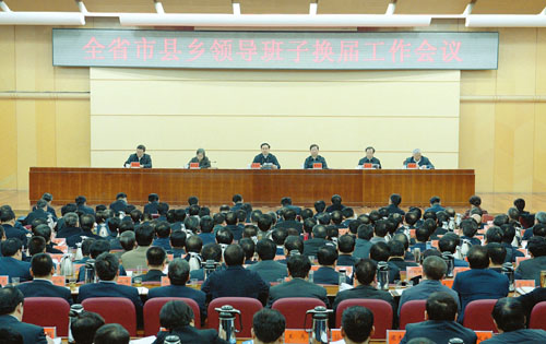 圖為全省市縣鄉(xiāng)領(lǐng)導(dǎo)班子換屆工作會(huì)議會(huì)場(chǎng)。 本報(bào)記者李聯(lián)軍攝