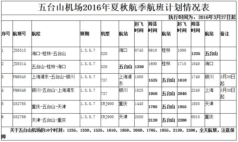 五臺(tái)山機(jī)場(chǎng)2016年夏秋機(jī)場(chǎng)巴士 運(yùn)營時(shí)間及航季航班計(jì)劃情況 |