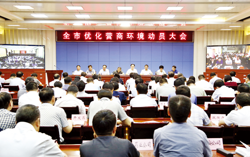 全市優(yōu)化營(yíng)商環(huán)境動(dòng)員大會(huì)現(xiàn)場(chǎng)。趙菁 攝