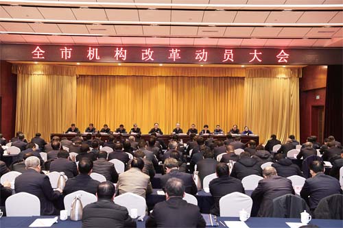 會議指出,要充分認識深化黨和國家機構改革的重大意義,增強推進機構改革工作的思想自覺、政治自覺和行動自覺。深化黨和國家機構改革是黨中央作出的重大決策部署,是推進國家治理體系、治理能力現代化的一場深刻變革,要充分認識推動這場改革的歷史現實必然性,準確把握這次改革的正確方向和著力點,堅持自覺推動機構改革工作的政治擔當。我市機構改革的工作重點已經進入到抓組織實施的重要階段,當前又處歲末年初,頭緒多、任務重、時間緊。做好全市機構改革工作,既是一項重大政治任務,也是一次重大政治考驗。各級黨委(黨組)要將其作為頭等大事來謀劃組織落實推動,全市各級各部門要提高政治站位,統(tǒng)一思想認識,牢記“四個意識”,堅定“四個自信”,做到“兩個維護”,領導干部特別是“一把手”既要掛帥又要出征,強化責任擔當,狠抓任務落實,確保改革落地。