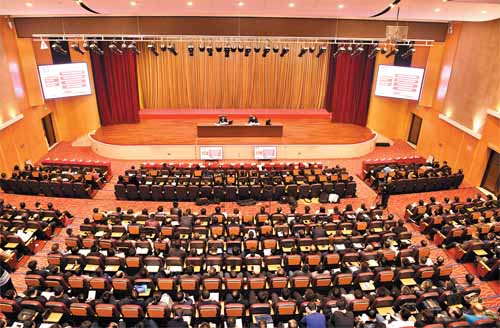 圖為我市學(xué)習(xí)貫徹黨的十九屆四中全會精神省委宣講團(tuán)報告會會場。本報記者 劉紀(jì)森 攝