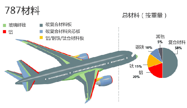 787飛機(jī)的碳纖維復(fù)合材料使用量占到了全機(jī)體積的80%。從航空領(lǐng)域到汽車工業(yè)上的應(yīng)用,碳纖維復(fù)合材料對(duì)于工程產(chǎn)品的關(guān)鍵意義就在于輕質(zhì)高強(qiáng)。汽車上常用的碳纖維增強(qiáng)樹(shù)脂基復(fù)合材料的密度為1.5-2.0g/立方厘米,這只有普通碳鋼的1/4-1/5,比常用的鋁合金還要輕1/3左右,但碳纖維復(fù)合材料的機(jī)械性能優(yōu)于金屬材料,其抗拉強(qiáng)度高于鋼材3-4倍,剛度高于鋼材2-3倍。