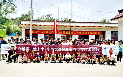2018年6月2日“心希望信未來”東風(fēng)悅達起亞世界杯公益行活動如期成功舉行。本次活動由東風(fēng)悅達起亞廠家冠名支持,由忻州碧玉泉公司員工、部分保有客戶及家屬、意向客戶及媒體工作人員共60多人和代縣兩界溝小學(xué)全體師生共同參與。