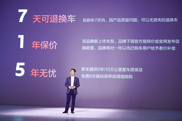 “買車放心”,開創(chuàng)性地推出“7·1·5”三項(xiàng)服務(wù)政策,即“7天可退換車”“新車承諾1年保價(jià)”“新車質(zhì)保5年無憂”。消費(fèi)者在購車7天內(nèi),因產(chǎn)品質(zhì)量問題,可以無損失的退換車;雙品牌新上市車型,品牌下調(diào)官方指導(dǎo)價(jià),或官網(wǎng)發(fā)布促銷政策,將對(duì)1年以內(nèi)已購車用戶給予差價(jià)補(bǔ)償;新車至高享受5年/15萬公里整車質(zhì)保+免費(fèi)6次基礎(chǔ)保養(yǎng)(或可選擇增值換購禮),遠(yuǎn)高于三包標(biāo)準(zhǔn)和行業(yè)水平。