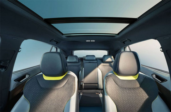 ID.4長寬高分別為4,592 mm x 1,852mm x 1,629 mm,軸距為2,765 mm。受益于MEB架構(gòu),ID.4車內(nèi)空間十分寬敞,全景玻璃車頂讓車內(nèi)更加通透。內(nèi)飾所運用的色彩和材料極具現(xiàn)代感,懸浮式的儀表盤與中控臺采用獨立式的設(shè)計,體現(xiàn)出極簡風(fēng)格。另外,車輛還設(shè)有可自定義的30色背景氛圍燈,為內(nèi)飾增色不少。