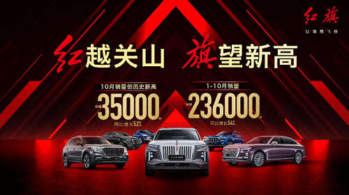 每一分對極致產(chǎn)品付出的努力,都將贏得客戶最珍貴的選擇和信任。10月,紅旗H9終端銷售量突破4000臺,緊跟一線豪華品牌同級車型,繼續(xù)擴大國產(chǎn)品牌豪華轎車銷量領(lǐng)先優(yōu)勢;紅旗E-HS9以終端銷售量突破810臺的成績,創(chuàng)下單車型月銷量紀(jì)錄;紅旗“雙9”成為增強客戶產(chǎn)品體驗、帶動新紅旗產(chǎn)品矩陣向上突破的強大“引擎”。