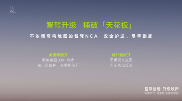 伴隨著阿維塔11鴻蒙版智享升級款的上市,阿維塔“去高精地圖化”智駕時代正式開啟,打破“按圖索驥”束縛,完美彌補當下高精地圖智駕方案的不足并解鎖更多高頻智駕場景,城區(qū)NCA智駕功能即將一次性解鎖超過300個城市,帶來“全國都能開、 全國都好開”的出行體驗。