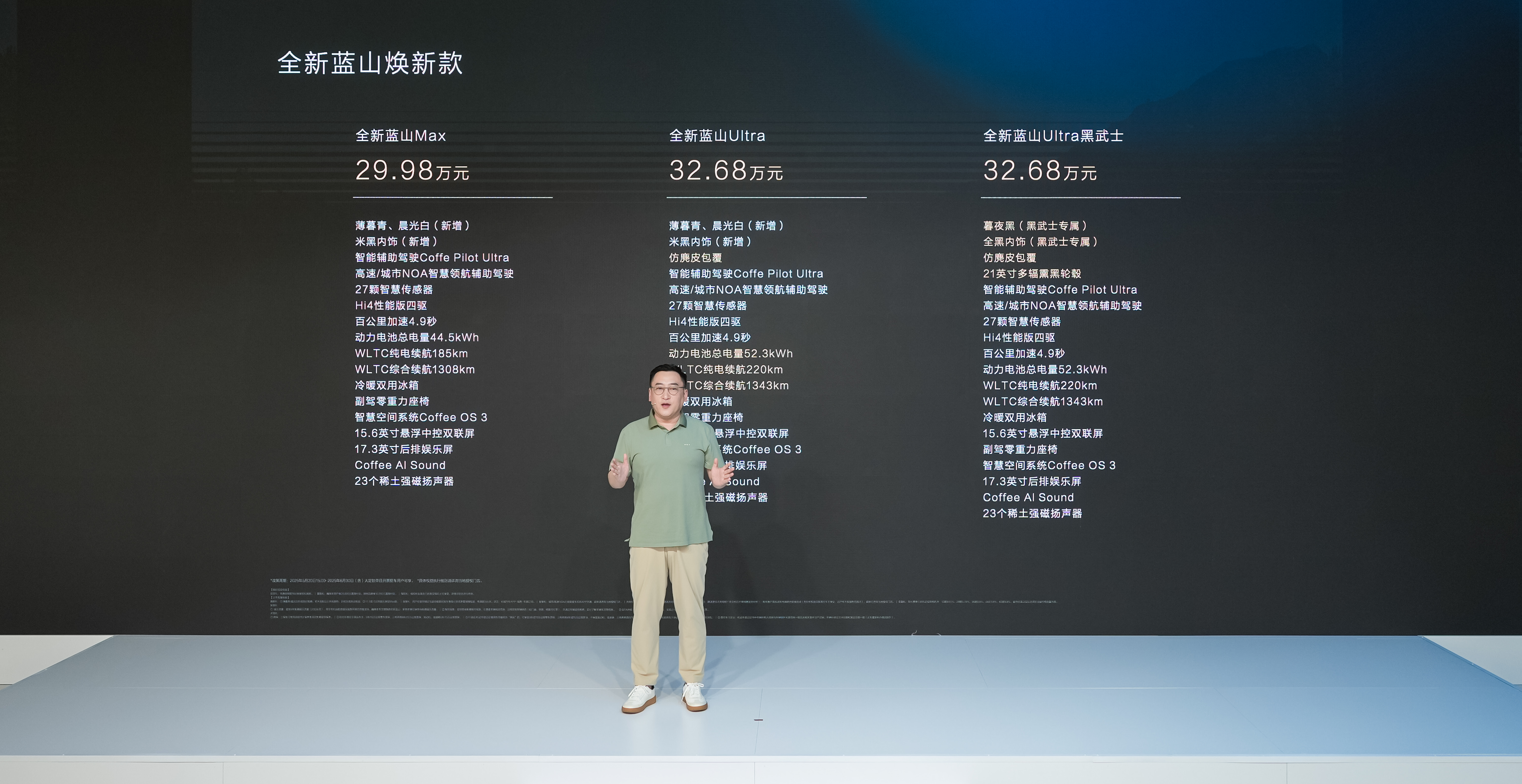 全新藍(lán)山煥新款正式發(fā)布,全新藍(lán)山煥新款MAX版、全新藍(lán)山煥新款Ultra版、全新藍(lán)山煥新款Ultra黑武士版售價(jià)分別為29.98萬元、32.68萬元、32.68萬元。購車用戶可享至高價(jià)值82,599元的限時(shí)煥新權(quán)益,魏牌老用戶置換全新藍(lán)山煥新款,可獲翻倍補(bǔ)貼及終身免費(fèi)流量。
