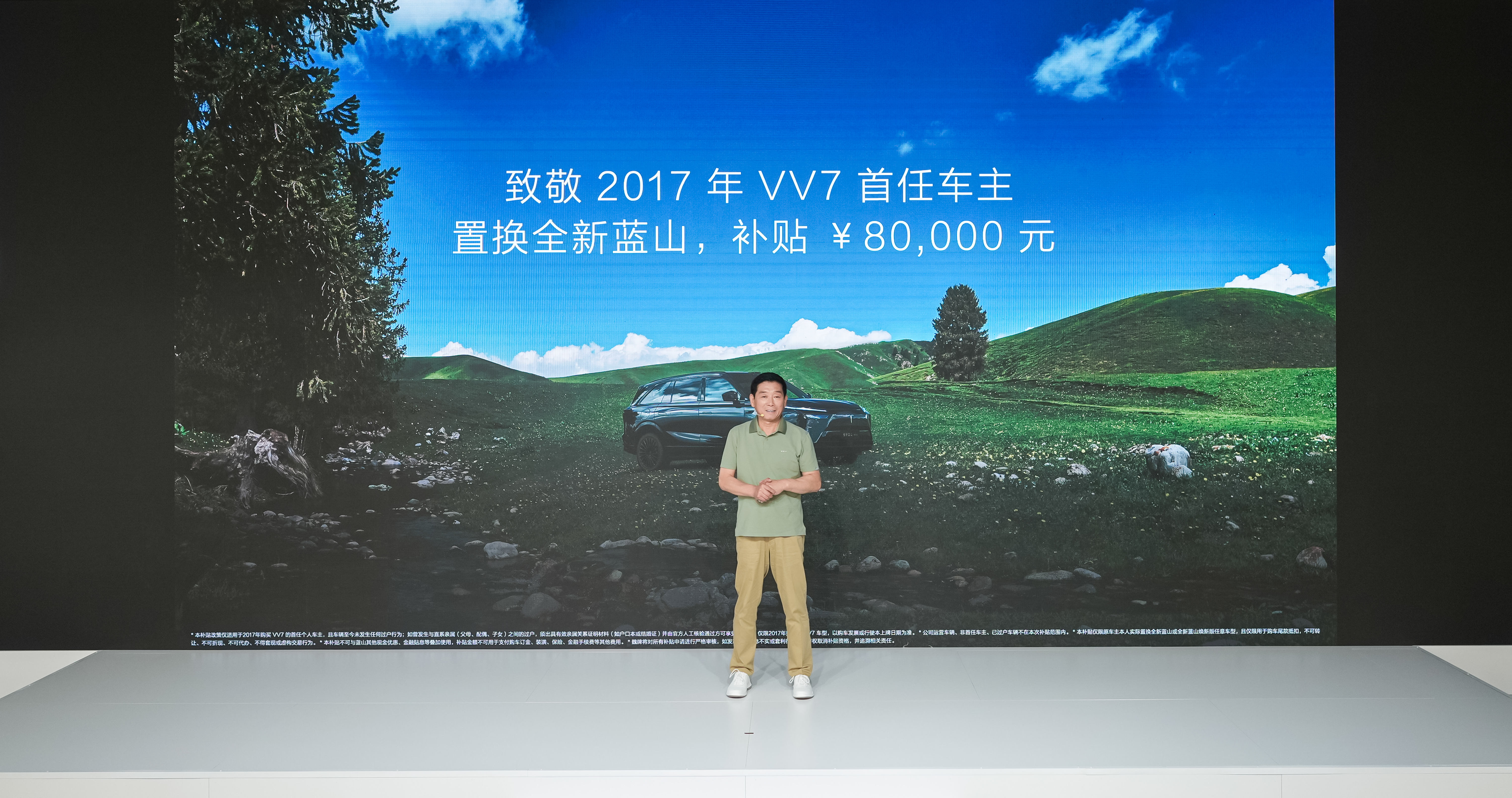 魏建軍表示:“我們不能虧待和忘記最初支持我們的那批用戶。要感謝他們最早支持我們魏牌。所以今天,為最早在2017年購買VV7的首任車主補(bǔ)貼,在魏牌8周年之際,置換全新藍(lán)山,補(bǔ)貼8萬?!?/p>