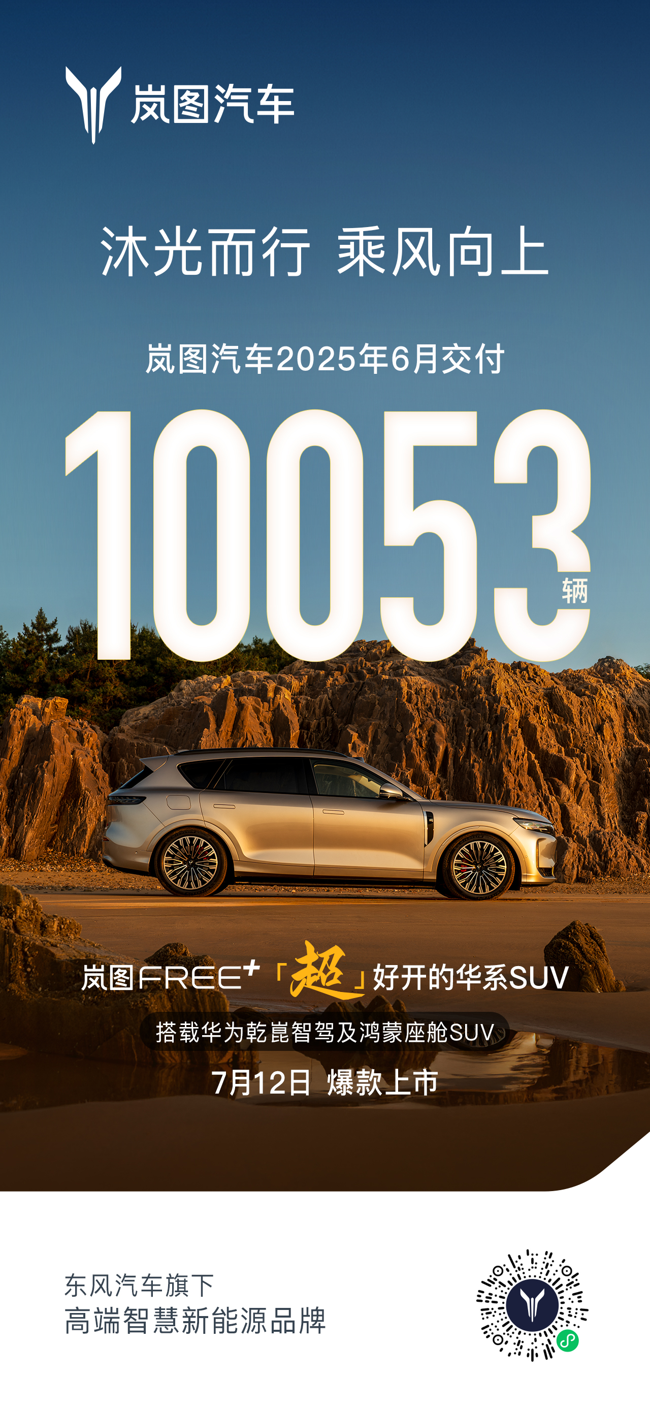 嵐圖汽車CEO盧放表示:“在用戶和合作伙伴的支持下,嵐圖汽車上半年實現(xiàn)了持續(xù)增長,銷量增幅跑贏行業(yè)大勢,為用戶帶來了爆款產品嵐圖夢想家,滿足了用戶更安全更智慧的出行需求。接下來,嵐圖汽車將繼續(xù)以用戶為中心,加快技術創(chuàng)新,為用戶帶去更多更好的產品和服務,相信隨著7月12日嵐圖FREE+上市,嵐圖銷量還將實現(xiàn)更加跨越式的發(fā)展!”