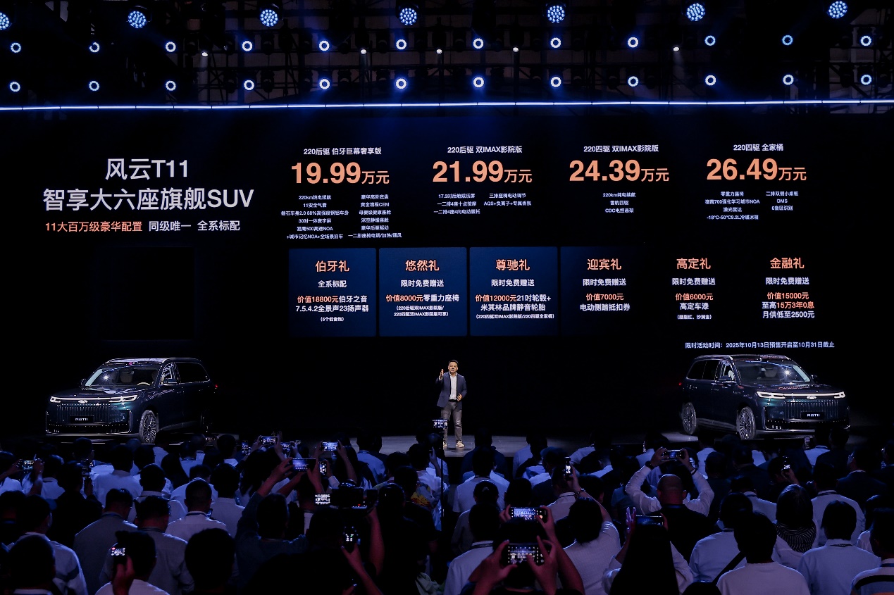 10月13日,以“兌現”為主題的風云T11家庭品鑒日暨預售發(fā)布會在安徽蕪湖圓滿收官。作為風云品牌煥新后的首款旗艦級SUV,風云T11定位為“智享大六座旗艦SUV”。新車以“頂格對標”為理念,憑借“超大更好”四大核心價值、三大沉浸式場景與11大全系標配,兌現用戶對品質生活的全維期待。