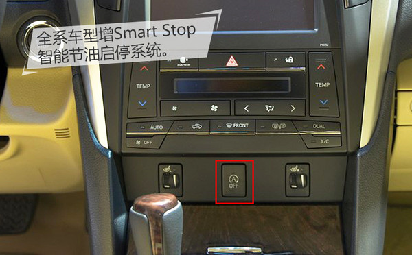 可以說新車最大的一個(gè)升級(jí)亮點(diǎn),就是增加了豐田的Smart Stop智能節(jié)油啟停系統(tǒng)。省油原本就是凱美瑞的一大特質(zhì),好比筆者的7代2.5L車型目前在平均油耗僅為9個(gè)油(北京上下班使用)。增加S&S系統(tǒng)之后,凱美瑞的油耗將進(jìn)一步下降。