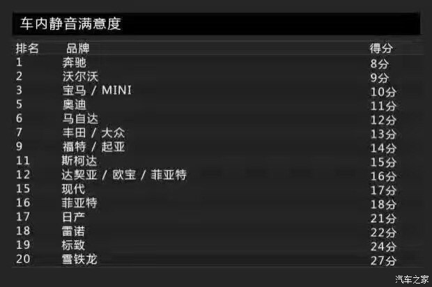 Bild這次調(diào)查的車內(nèi)靜音品質(zhì)上,排名第一的是奔馳,它的得分為8分,而排在第二名的則是沃爾沃,它的得分為9分。寫到這里,小編不得不說(shuō):老哥,真穩(wěn),服!滿意度最低的則是雪鐵龍,又是法國(guó)車企,Auto