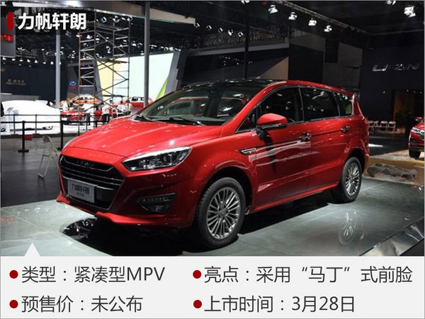 在2016年11月舉行的廣州國際車展上,力帆汽車對外發(fā)布了全新MPV—軒朗,其“馬丁”式前臉設(shè)計令人印象深刻,同時運(yùn)動化輪圈與下沉式車頂?shù)拇钆湟彩窍嗟靡嬲?。?nèi)飾方面,力帆軒朗以黑色為主,中控臺下方按鍵布局較為簡潔,實用性較高。力帆軒朗搭載了1.5L渦輪增壓和2.0L自然吸氣兩款發(fā)動機(jī),前者匹配的是8速自動變速箱或5速手動變速箱,后者則匹配的是5MT或CVT變速箱。新車將于3月28日正式上市。