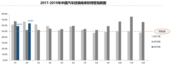 昨日(3月4日),中國汽車流通協(xié)會(以下簡稱“流通協(xié)會”)發(fā)布月度數(shù)據(jù)顯示,2月汽車經(jīng)銷商庫存預(yù)警指數(shù)為63.6%,環(huán)比上升4.7個百分點(diǎn),同比上升11.3個百分點(diǎn),庫存預(yù)警指數(shù)位于警戒線之上。