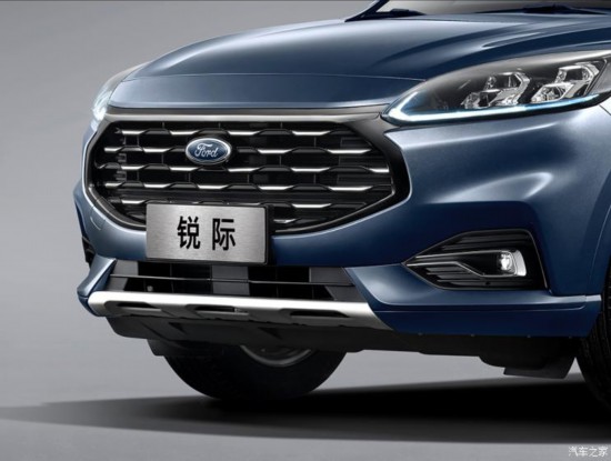 外觀來看,福特銳際整體基本延續(xù)了海外全新翼虎設(shè)計(jì),高配版車型還使用了針對(duì)中國市場專門設(shè)計(jì)的造型,采用了全新造型的六邊形前格柵,并在上方增加一根橫向鍍鉻飾條。同時(shí)福特車標(biāo)下移,嵌入到了格柵內(nèi)部。